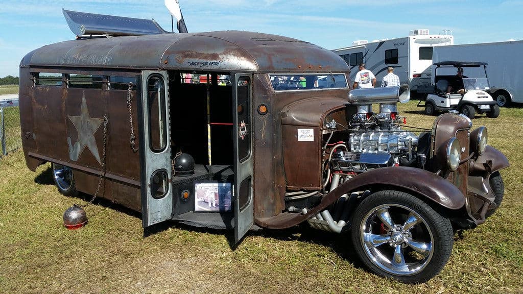 This is J.R Drake’s 1932 Ford Prison Bus Rat Rod which was built by the Kick-Ass Rod Shop in Hickory, North Carolina.