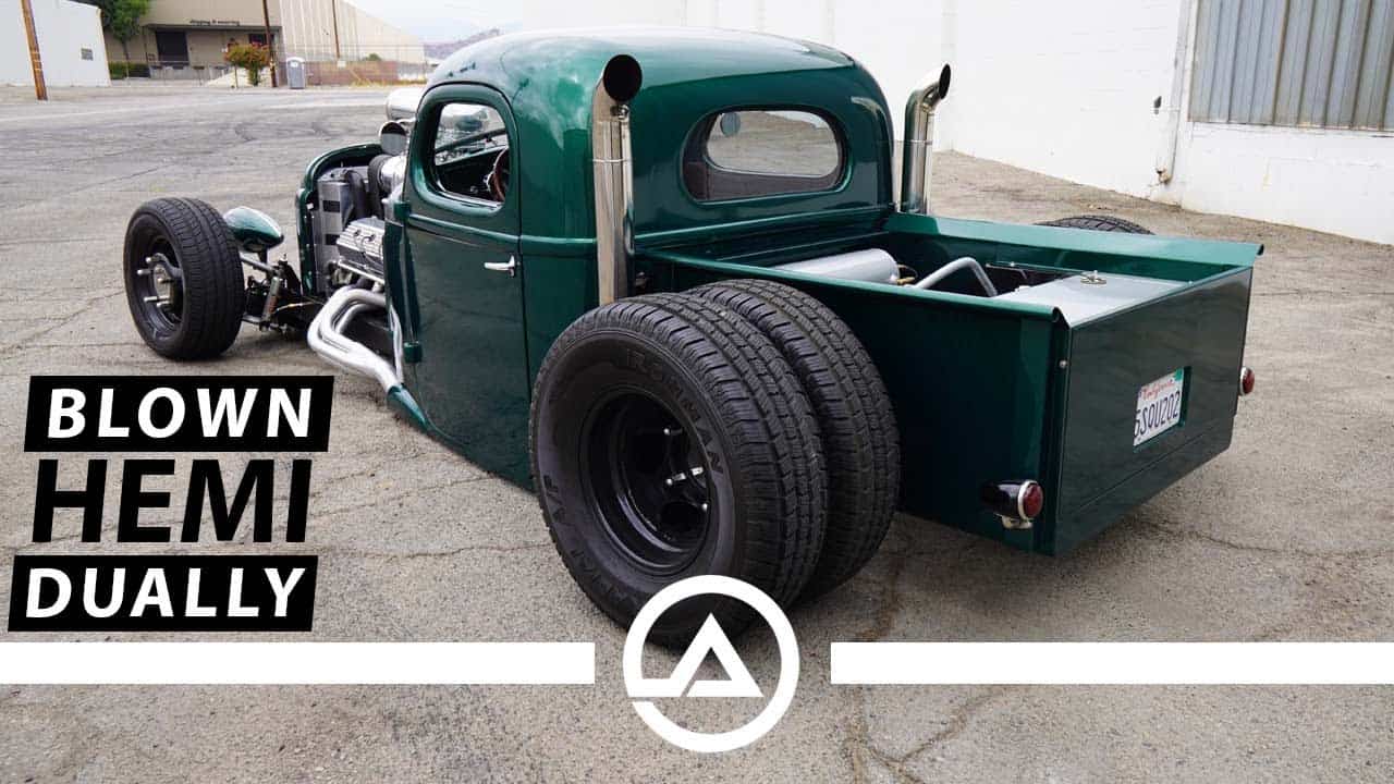 The duallys are mounted on a NASCAR rear-end and are ably driven by a blown 392 Hemi that breathes through an 871 blower and exhales through a pair of sizable stacks.
