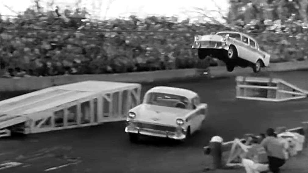 The “Thrill Driver’s Choice” ~ In 1956, Joie Chitwood Thrill Show drivers exclusively drove Chevrolet cars…