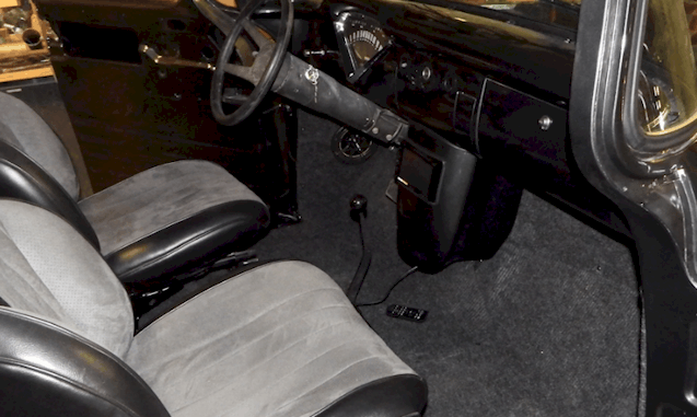 The ’55 Chevy Truck customer wanted a custom center console to house a stereo with navigation, but did not want to cut a bigger hole in the dash, he actually wanted the current hole gone.