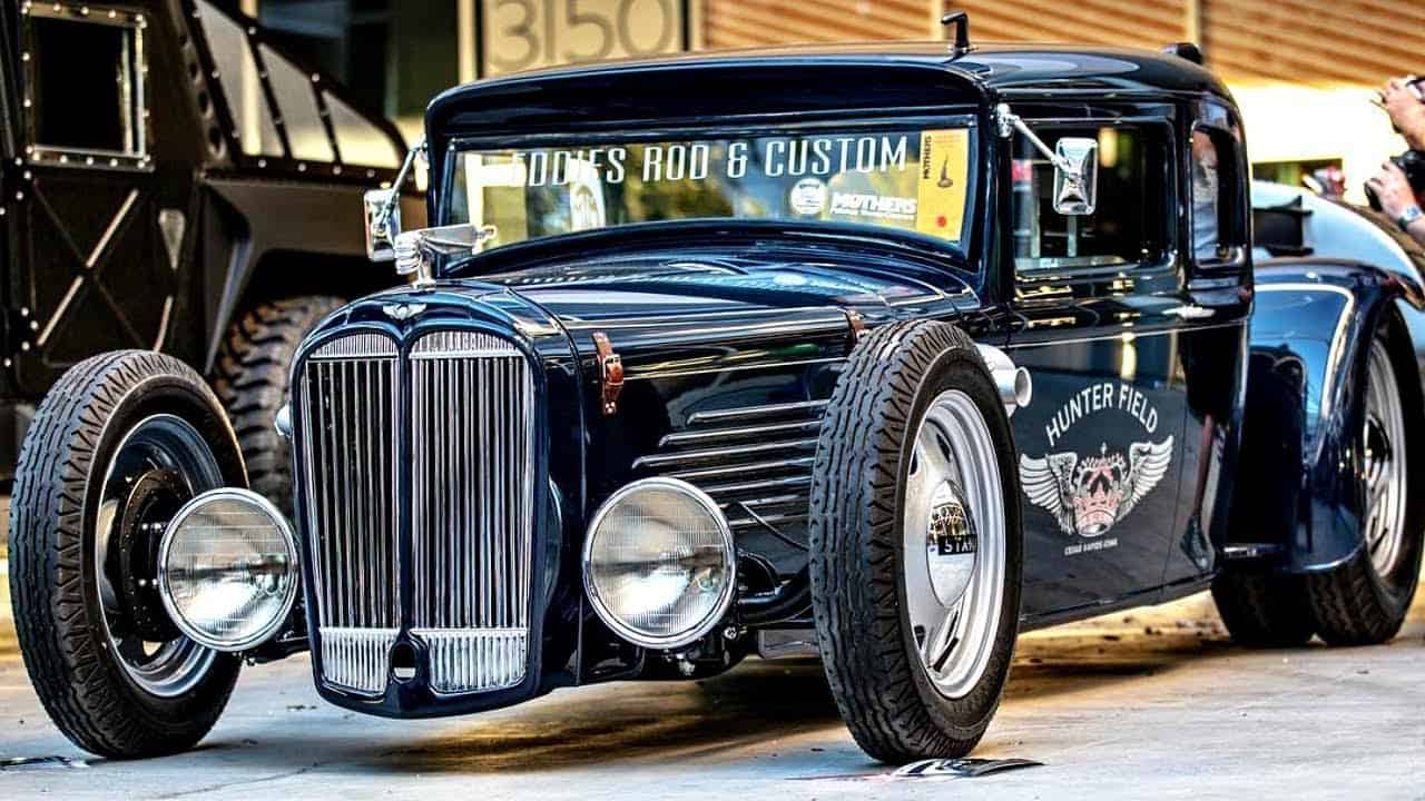This 1932 Willys is an aircraft/aviation themed build dubbed “Low Standard” — Low for being chopped and lowered 6 inches, Standard for Standard Oil — built by Eddies Rod & Custom in Cedar Rapids, Iowa
