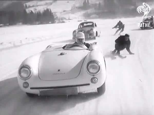 In Motor Skiing, cars including Porsches and Triumphs, as well as motorcycles, tow skiers at speeds of up to 100 miles per hour.