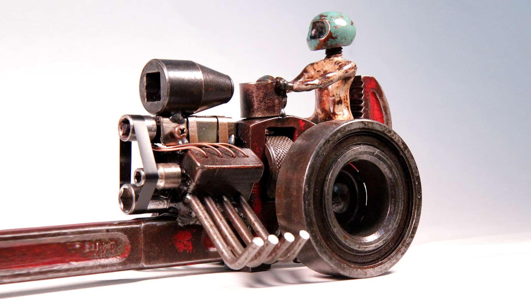 Derek McDonald is an independent artist based in Orange County, California who’s passionate about using recycled material, so he frequents scrap yards for pieces of metal and other nonsense.