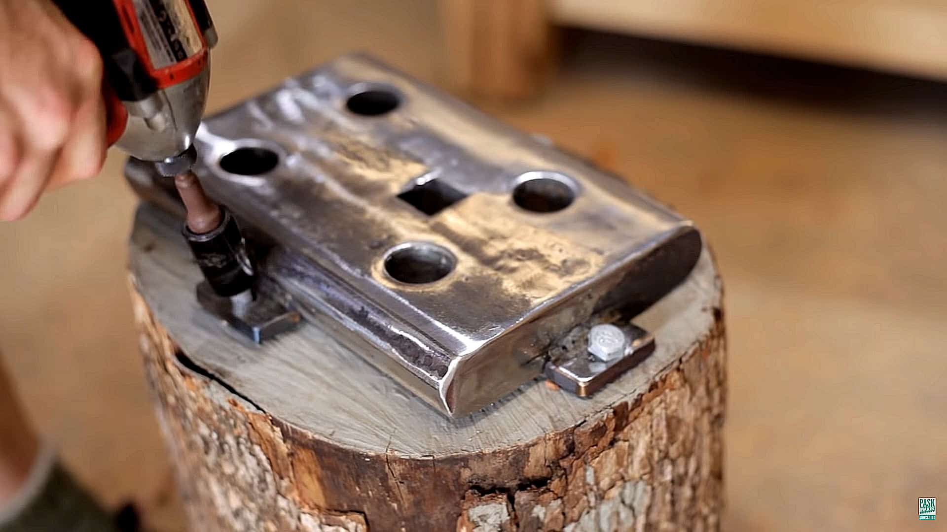 I’ve realized I need a hardy hole to help with certain blacksmithing tasks. As my little anvil doesn’t have a hardy hole and the fact a proper anvil is out of my reach, I put my mind to how I could get around it. This is what I came up with and I reckon it will do the job just fine!