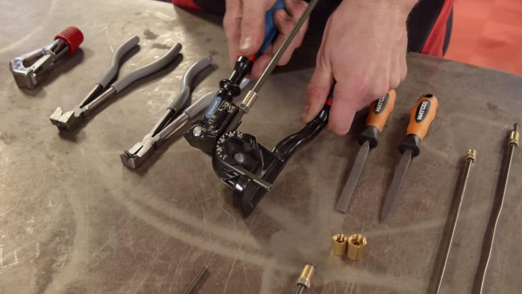 A good brake-line cutter is also essential because they have a wheel that will actually cut your brake line and a point that will take the burr out from the inside of your brake line.