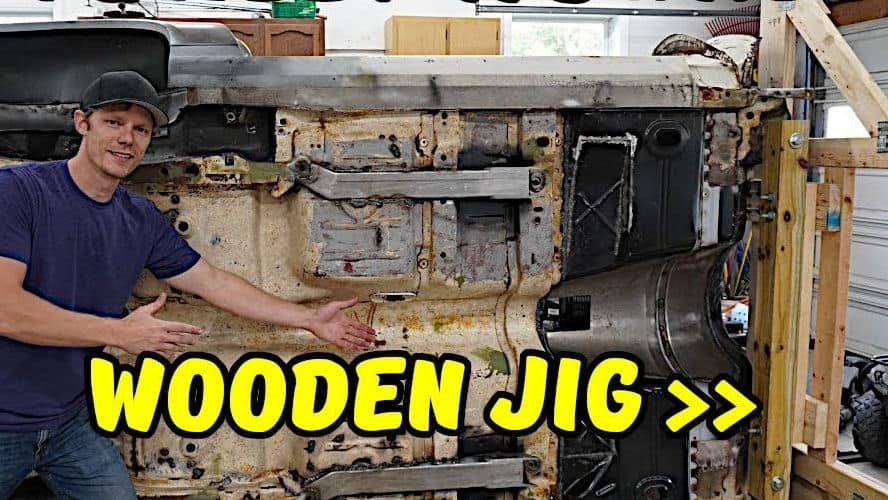 They built this wooden tip-over jig for under a couple hundred bucks. This wooden tip-over jig should work for most F-body cars but can be easily modified and adapted to fit many other classic cars and projects.
