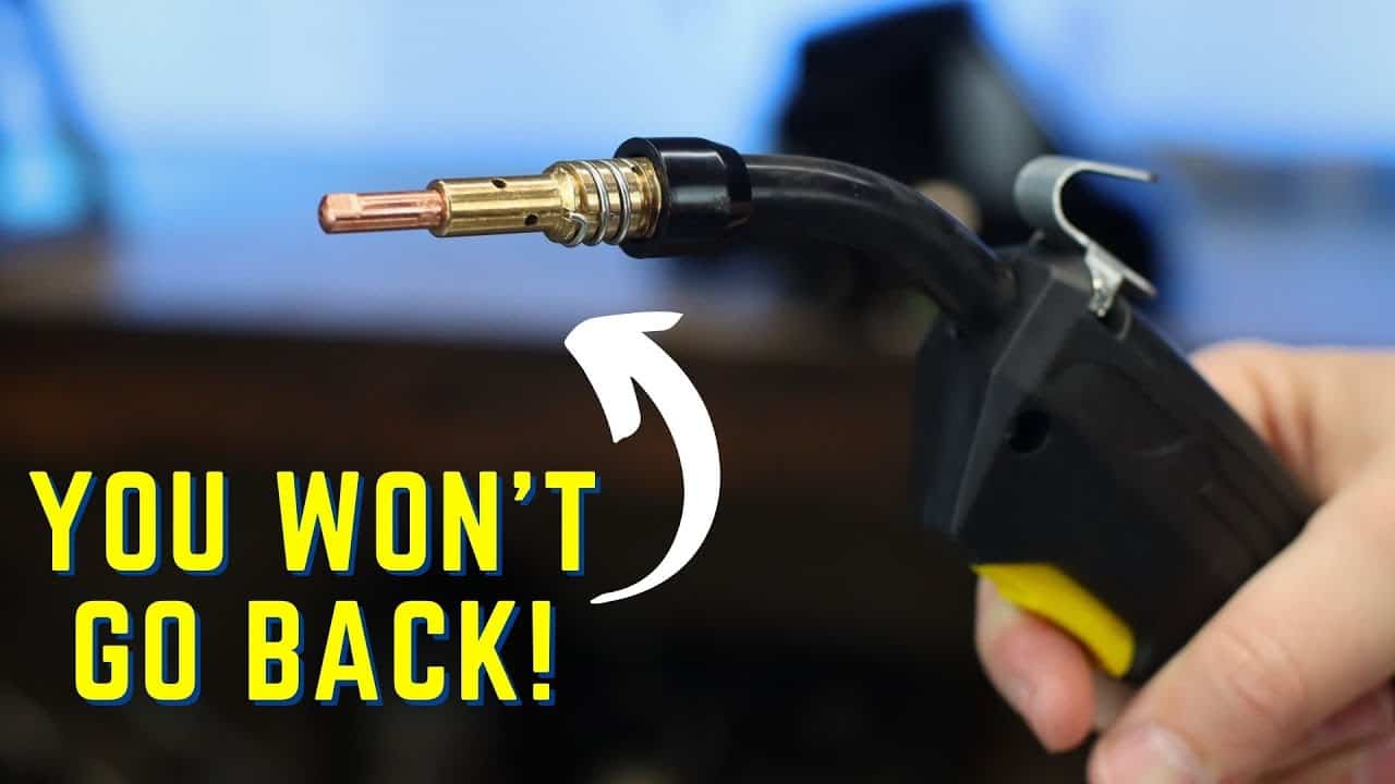 If you are using a MIG welder with flux core wire, you can enhance your welding experience by switching to a flux core nozzle specifically designed for this purpose. The flux core nozzle serves to protect the gas holes from spatter balls, making it ideal for flux core welding.