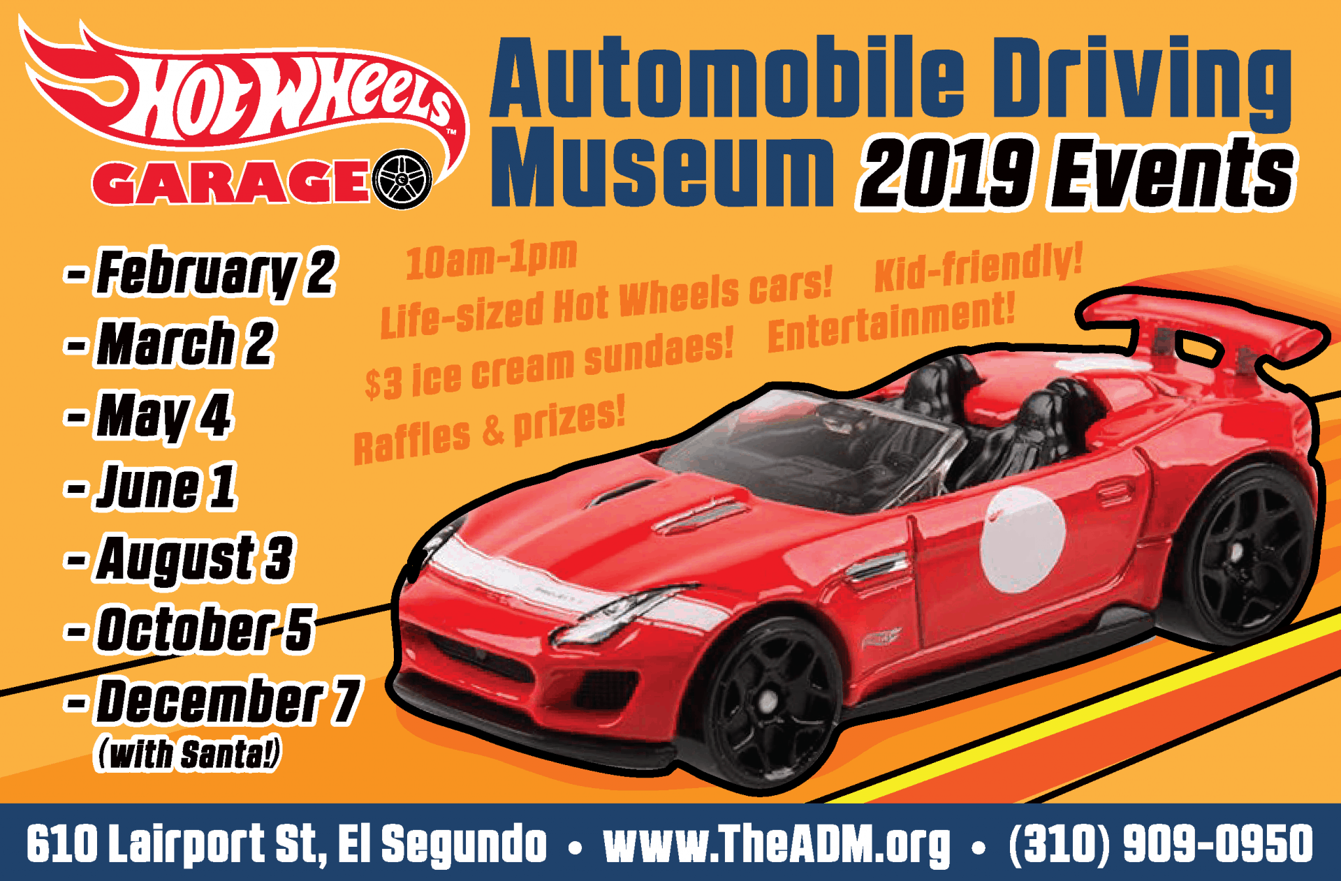 Come see life size Hot Wheels cars! Race tracks, art projects, face painting, balloon artist, train rides, prizes, raffle prizes, carnival rides, and more!