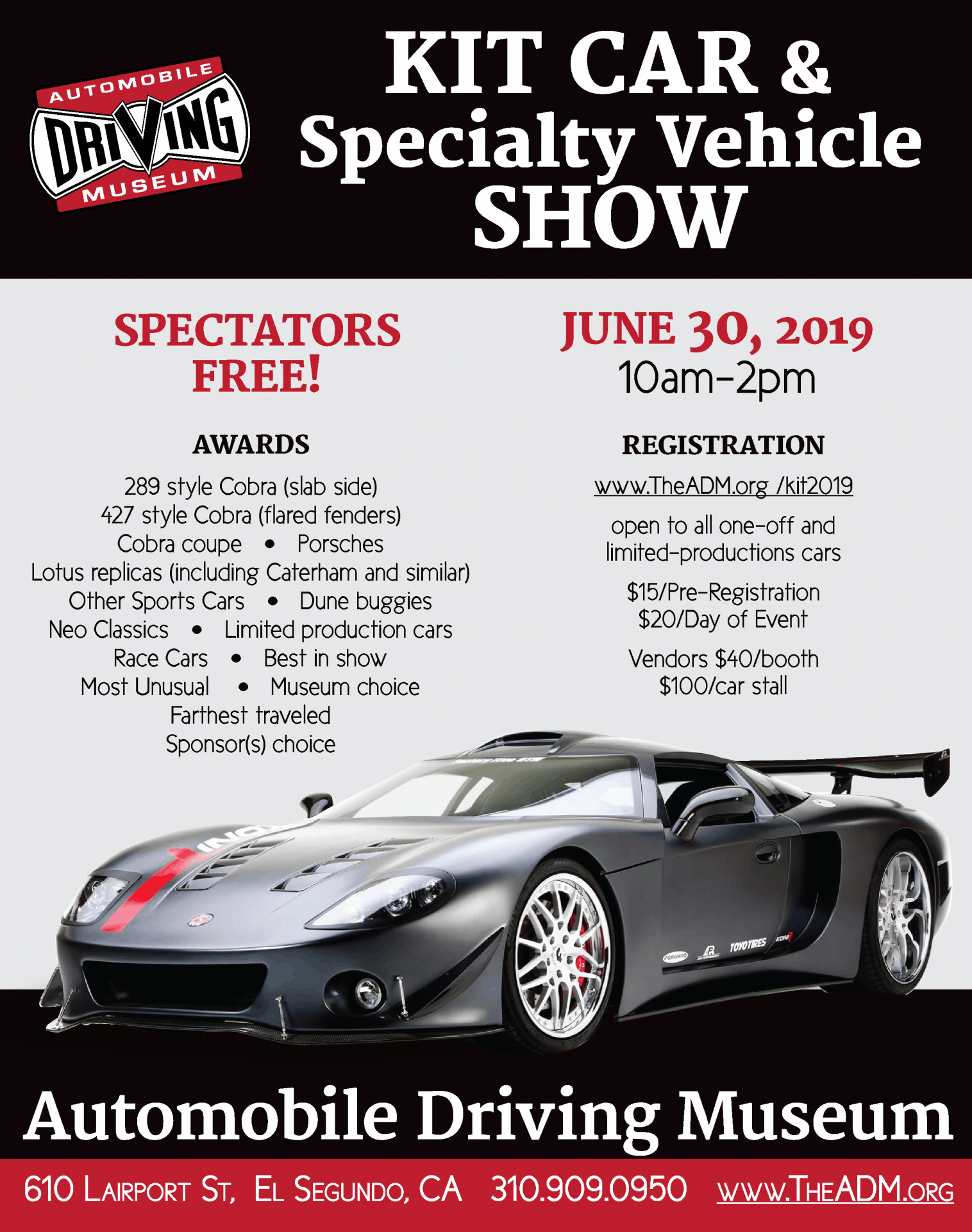 Come join us for the first KIT CAR SHOW at the ADM! Open to all one-off and limited production cars.