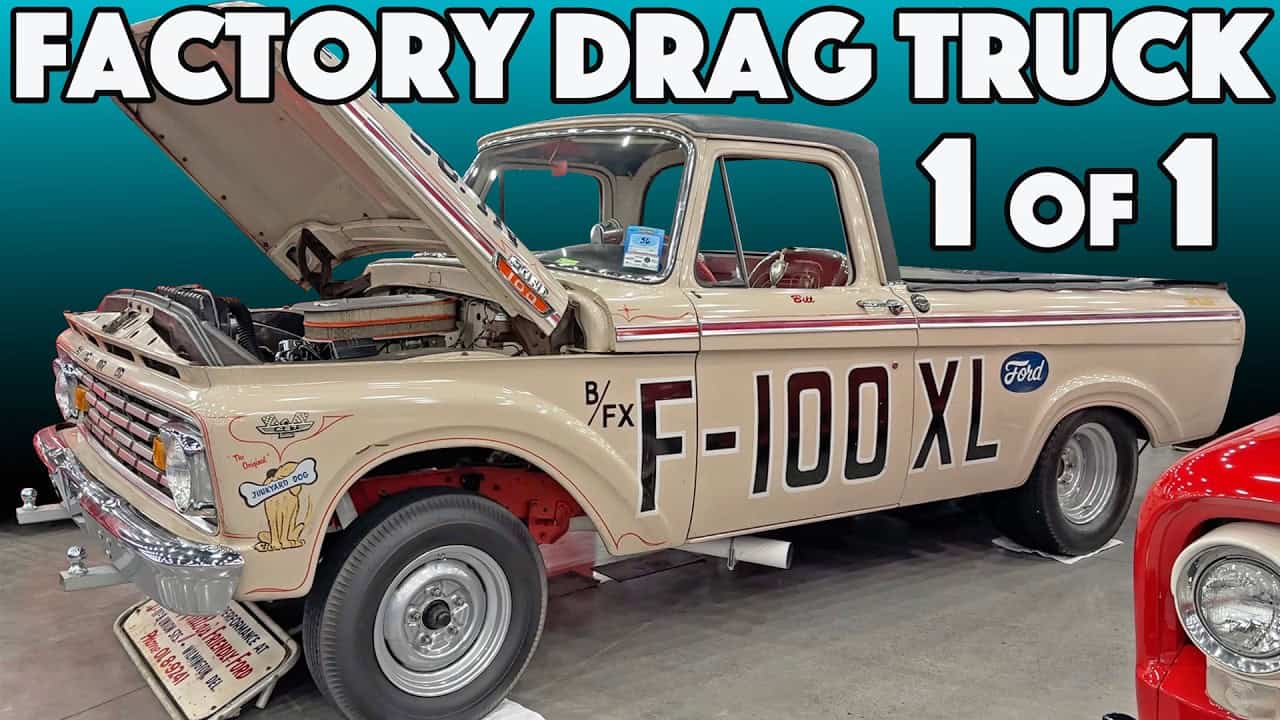 Ford commissioned this one-off F100 XL prototype in 1963 to compete in NHRA’s Factory Experimental class. This truck was built by Dearborn Steel Tubing, a shop that was known for its factory drag car builds, including the famous Ford Thunderbolt. But before the Thunderbolt project came along, DST built this 1963 Ford F-100 XL factory drag truck. It featured Ford’s 427ci 425hp FE engine, a T10 four speed transmission and 4.86 gears inside the 9 inch rear end housing. The truck ran in the 12’s, which was right on the mark for the B/FX class in 1963.