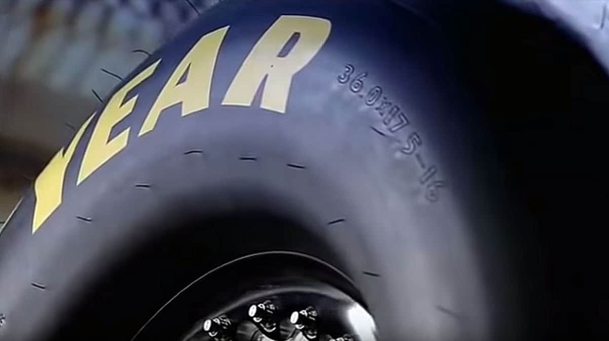 The tires have to face full-on acceleration right out of the starting gate, then heavy-duty braking after the finish line with the car deploying a rear parachute and slowing to an eventual stop.