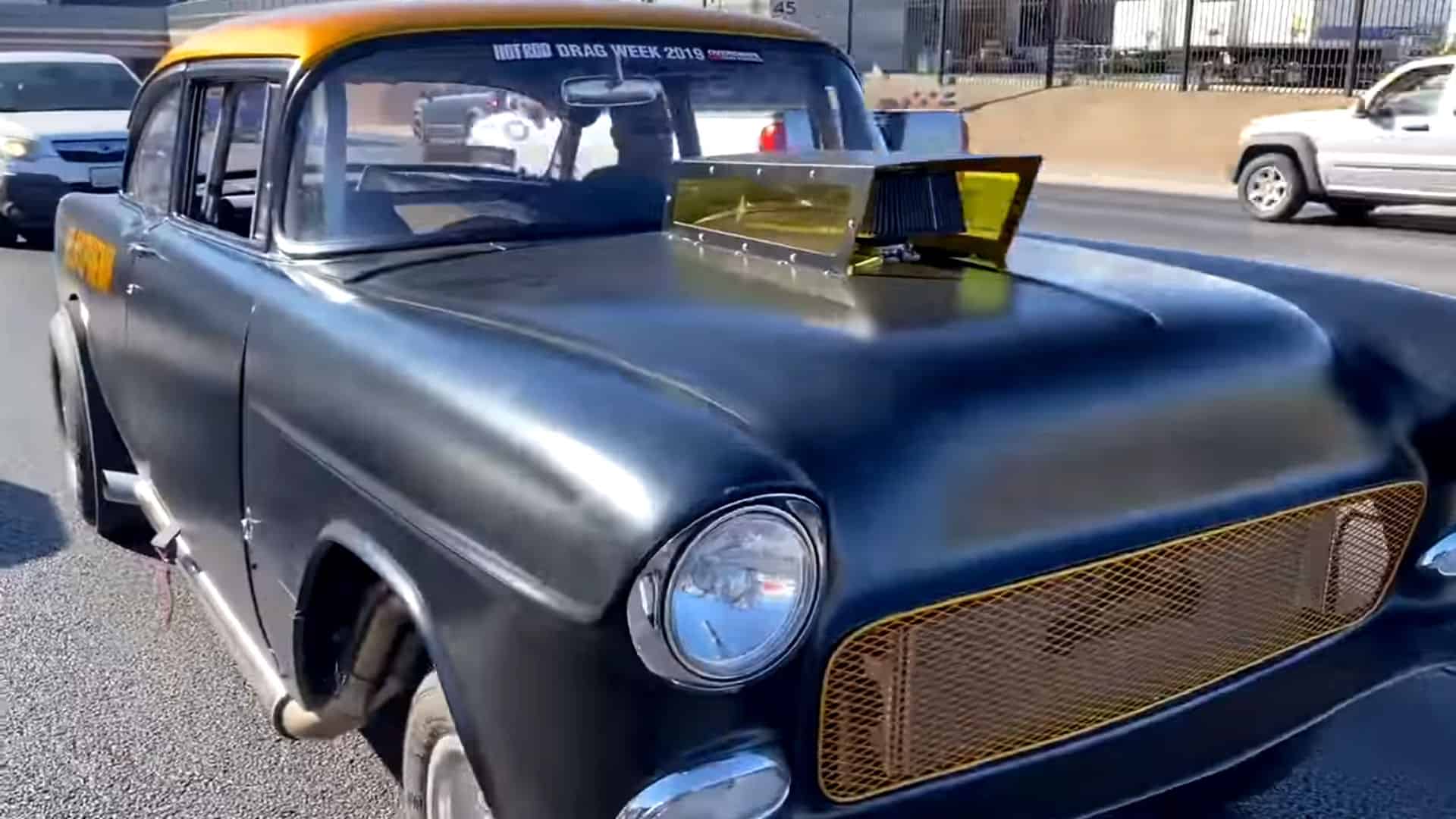 via Finnegan’s Garage ~ Finnigan, Cotten, and Newbern have spent last week in Vegas drag racing Blasphemi and now it’s time to move Blasphemi into the Motor Trend booth for The SEMA Show.