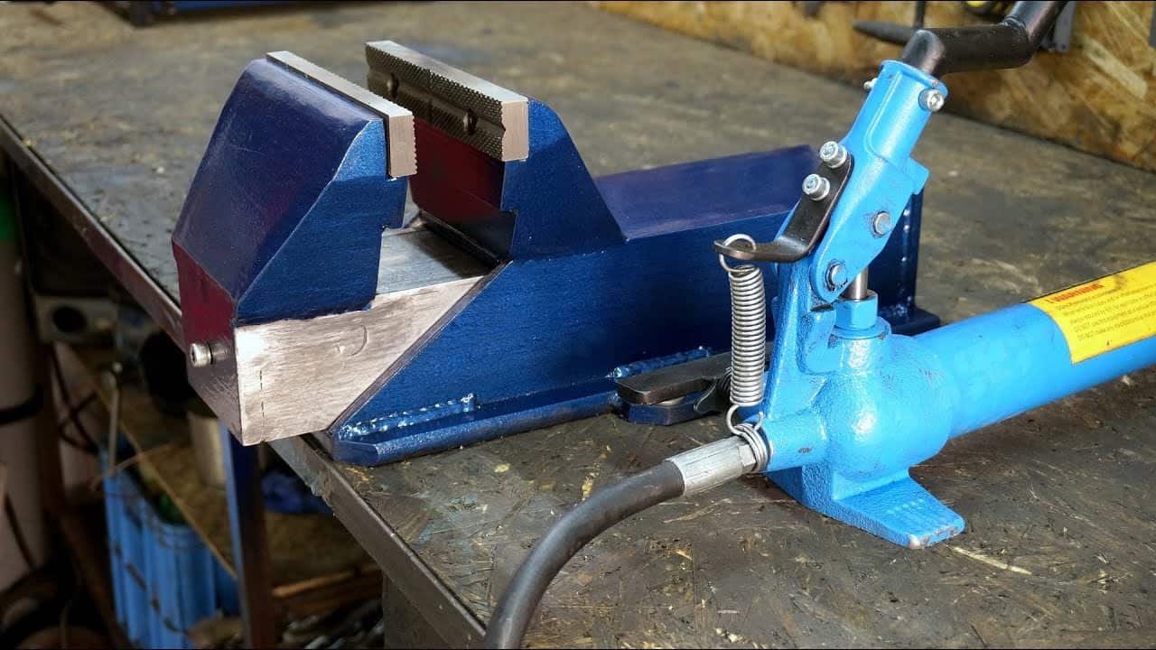 Generally, there’s very little that can go wrong with a bench vise, but when something does, why not take the opportunity to roll your own? And, while you’re at it, make it operate with hydraulics instead.