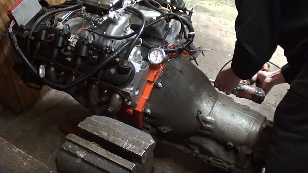 YouTuber BEETEROLDS needed to mount an older GM TH350 automatic transmission to a 6.0 Liter LS Engine…