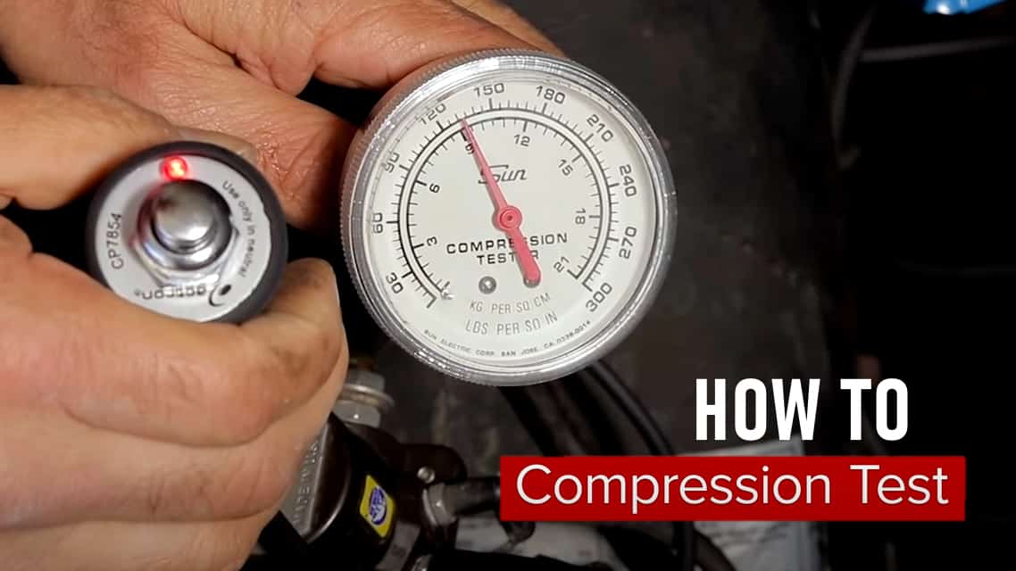 Connect the compression tester to a cylinder and turn the engine over about 6 to 8 compression strokes. You will be able to hear the cranking speed slow as the tested cylinder comes up on its compression stroke. Note how fast the compression increases and record the highest reading.