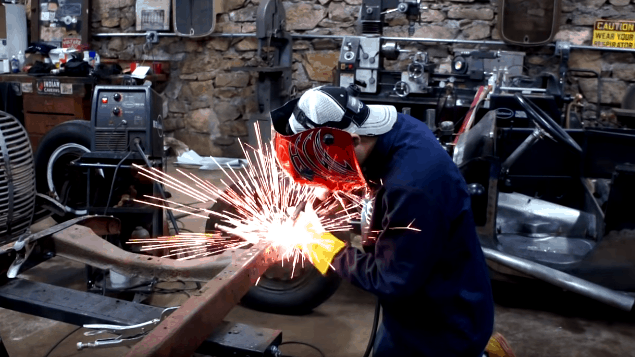 Andrew works on repairing a pair of damaged front frame horns on the Ford Model A and begins filling all the unwanted holes in the horns…