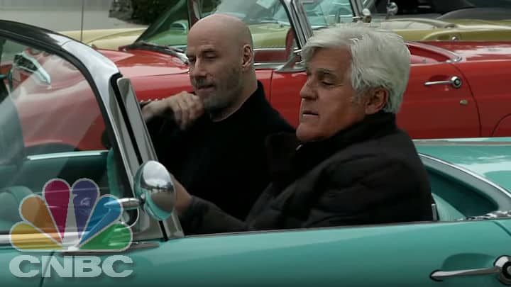 The sky’s the limit for Jay Leno and John Travolta as they take a blue 1955 Ford Thunderbird convertible for a nice joyride!