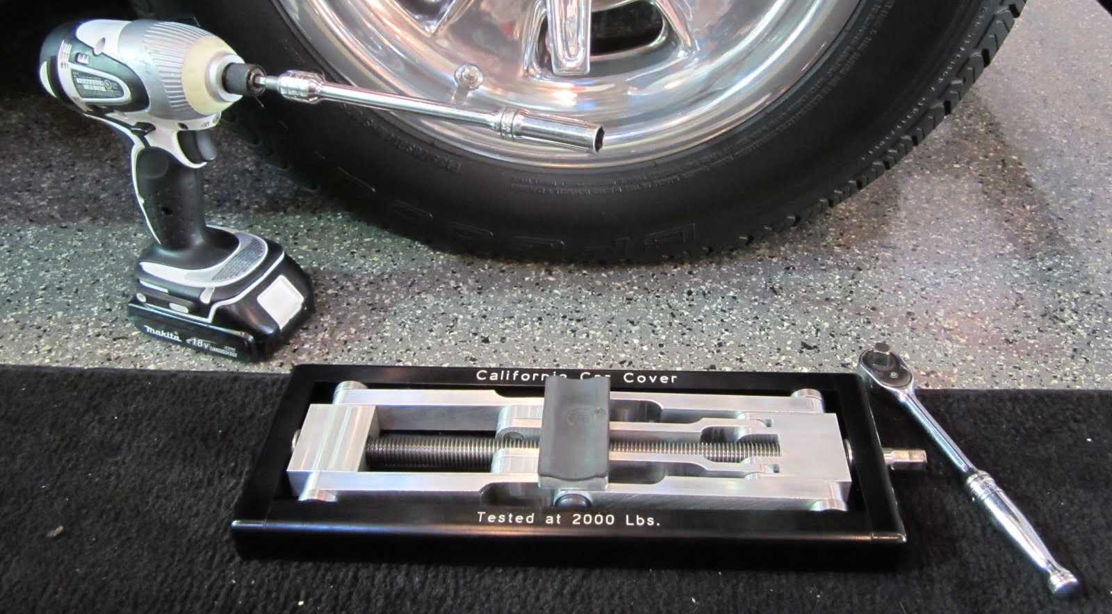 Minimal clearance is no problem with the Low Profile Billet Jack from California Car Cover.