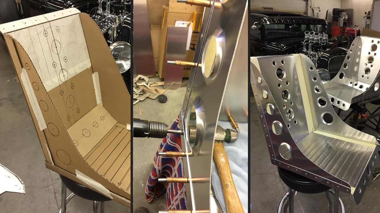 The following was posted in an oft frequented Facebook Group called Primer & Rust, Rats & Rods by Owen. It was offered up as a ‘Pictorial’ with no commentary. The bomber seats are crafted from .063 aluminum sheet.