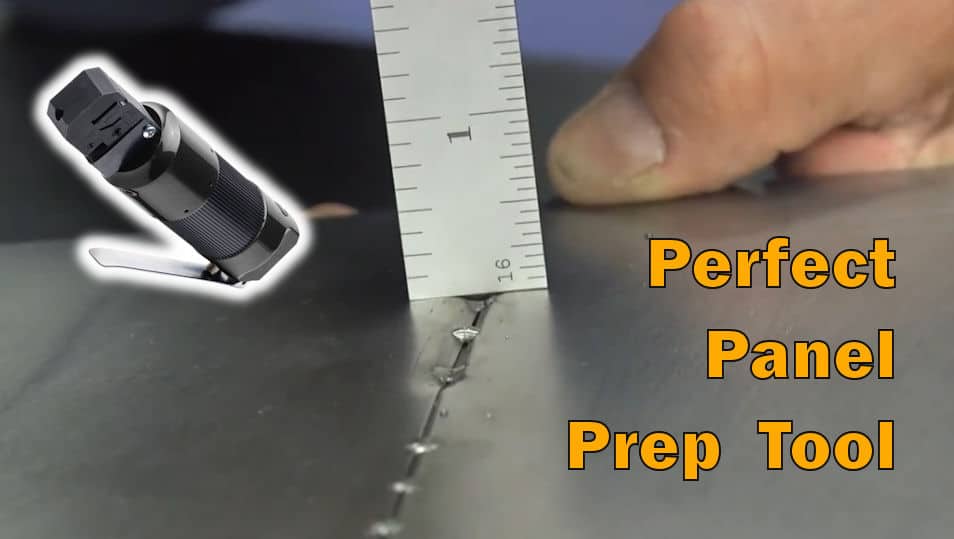 A must for the beginning welder and professional alike. Minimizes blow through and warpage when joining panels. Great for patch panels or full quarter panel replacement. Simply cut patch or full panel. Overlay panel over the repair area, scribe and cut panel on vehicle and use the Pneumatic Weld-Prep tool to create the “perfect weld edge”. The formed edge of both panels is now created that will accept the full penetration MIG or TIG bead with almost no post grinding or leveling minimizing warpage and crack potential around your repair. Patent Pending.