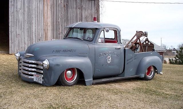 The Redneck Repo shop truck is a 1954 Chevrolet 3100 with a 1953 front clip.