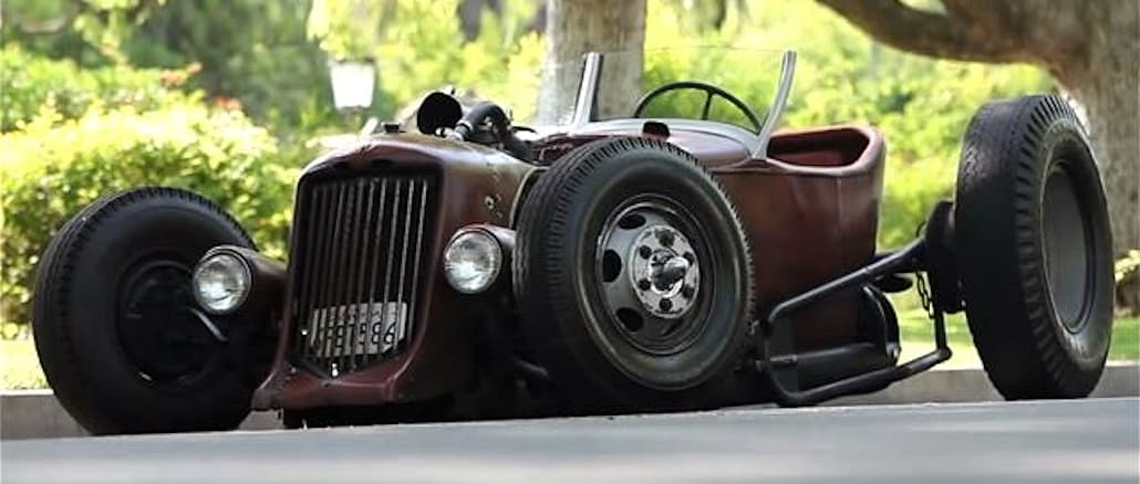 Its engine makes 275 horsepower, a monstrous 1,640 lb-ft of torque, and has over 1,000,000 miles on the clock. The chassis was built from old municipal light poles from the City of Hollywood. The body, that’s from a 1931 Ford.