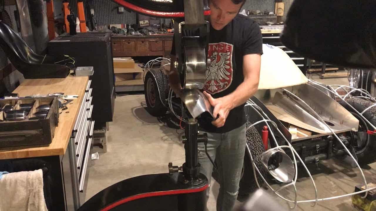 Beginning with pattern making, each step is explained in making two halves and forming them on the English wheel and Pullmax. Then the two halves are gas welded using Oxygen and Acetylene and finally finished to a mirrored polish…