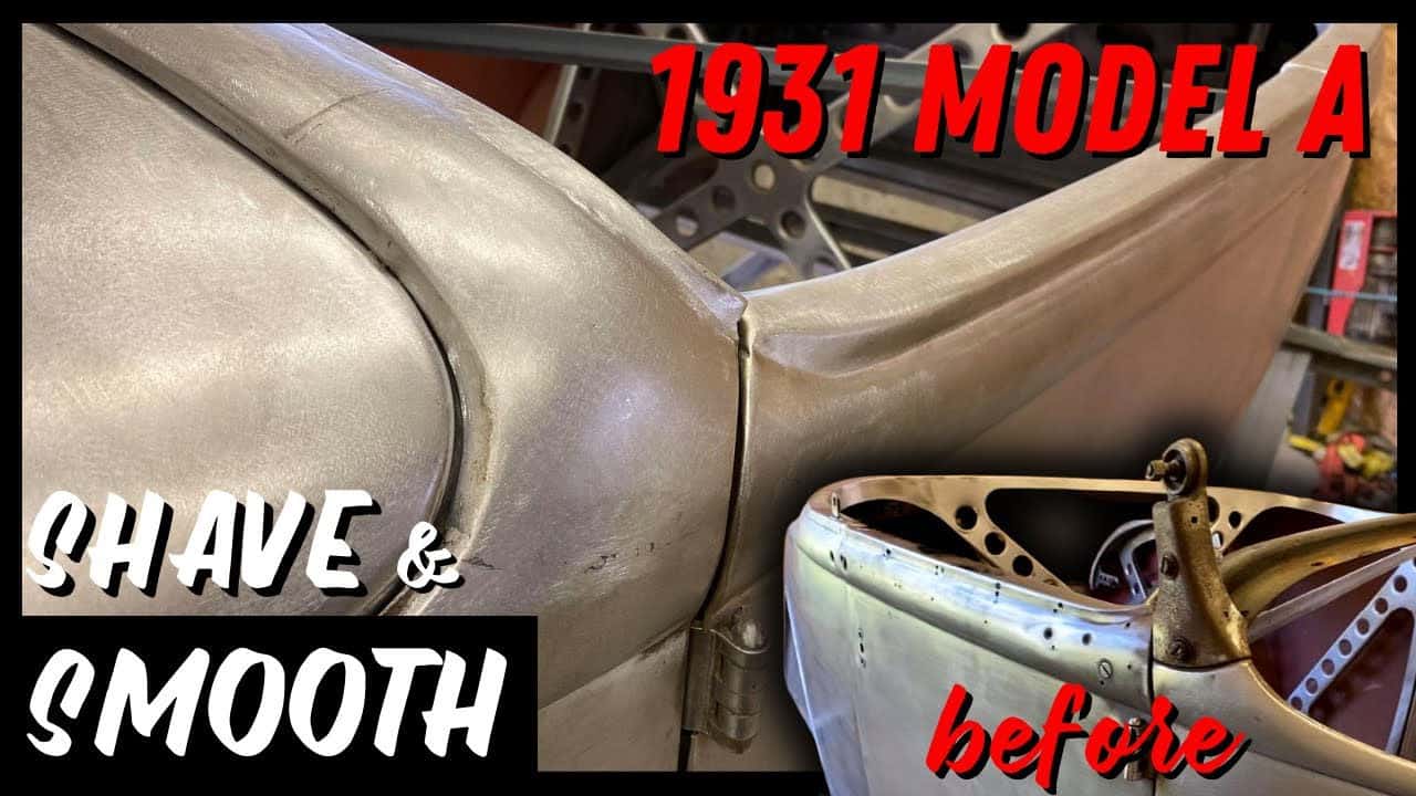 Karl Fisher from YouTube Channel Make It Kustom shaves the windshield posts from his 1931 Model A Roadster build to make way for a Duvall windshield and fills some holes in sheet metal and gaps the doors.