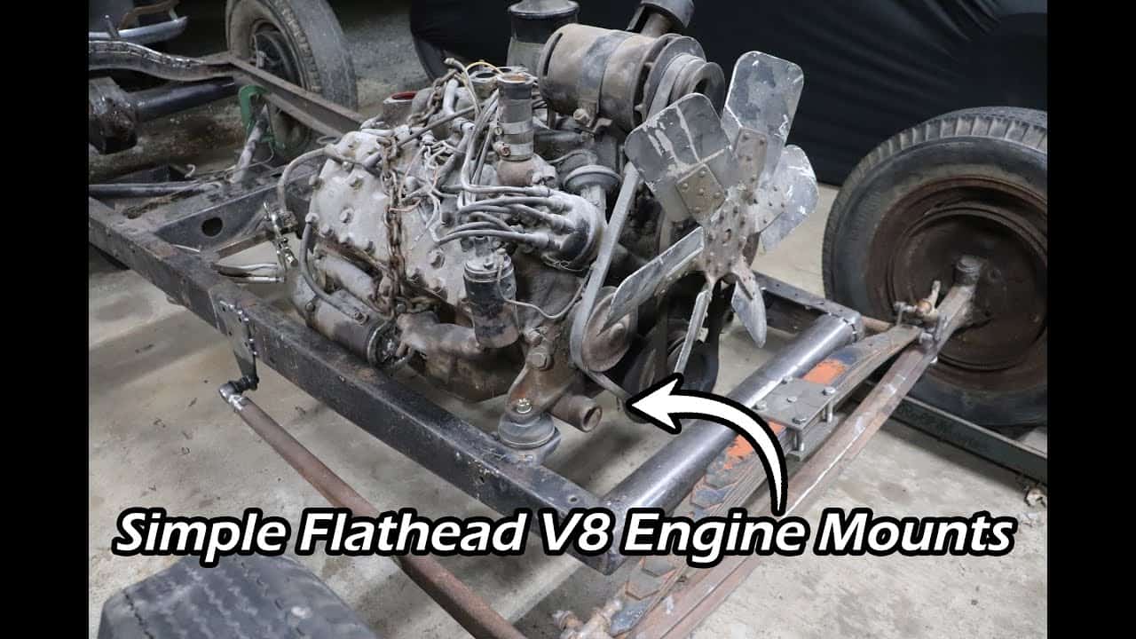 Matt from Iron Trap Garage centers the engine in the chassis and welds in Ford style biscuit mounts for a Ford Flathead V8 Engine…
