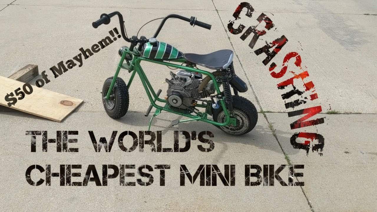 “We bought the cheapest mini bike we could find and revived it in an auto parts store parking lot… a few moments before we crashed it. This thing has no brakes, no chain tensioner, and it’s a seriously good time!”